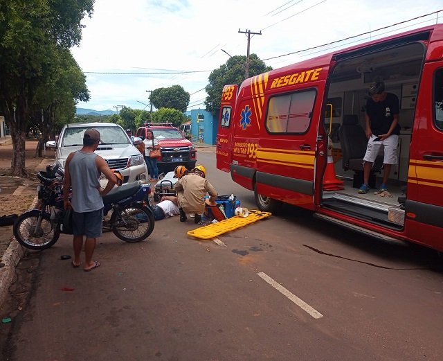O condutor da moto Honda Titan identificado pelas iniciais R.S.M., de 31 anos de idade, foi abordado caído ao solo na via, consciente e orientado.
