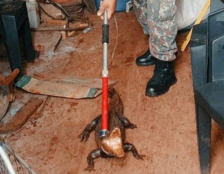 O primeiro animal, um jacaré de 1,3 metro, foi capturado com uso de cambão e puçá, no Parque dos Poderes, à rua do Poeta, em uma obra em um condomínio.