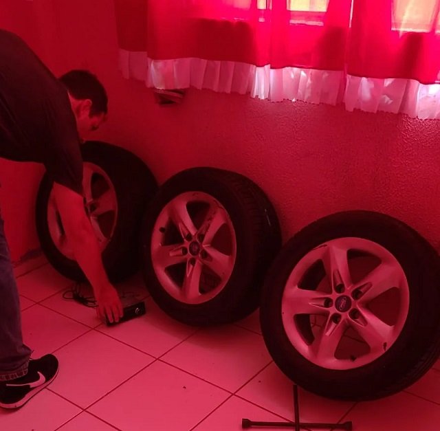 Foram localizados e apreendidos 04 jogos de rodas de camionete S10 e ainda 7 rodas e pneus de veículos ford e Chevrolet.