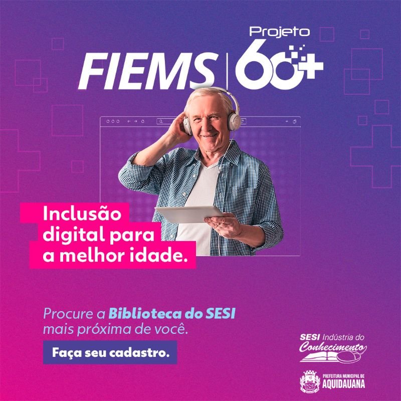 As vagas são limitadas e fazem parte do projeto “60 + Melhor idade”, específico para idosos de 60 anos ou mais, que terão aulas com acompanhamento de monitoras da Biblioteca Indústria do Conhecimento, de Aquidauana, em parceria com a Prefeitura de Aquidauana.