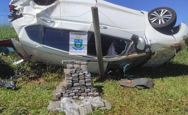 PM apreende 40 kg de maconha em veículo furtado que tombou na MS 040