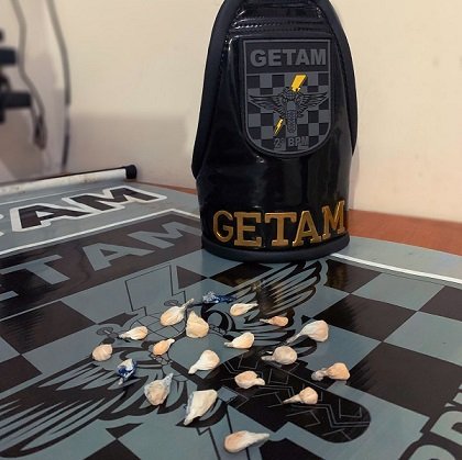 Durante busca pessoal os militares localizaram em um dos bolsos do abordado uma latinha, contendo no seu interior 19 substâncias análogas ao crack, embaladas e prontas para comercialização (4 gramas), em que ao ser perguntado ao abordado sobre a mercancia da substância, respondeu que vende pelo valor de R$10,00 e que venderia em bar já conhecido nos meios policiais por ser frequentado por indivíduos de índole duvidosa.