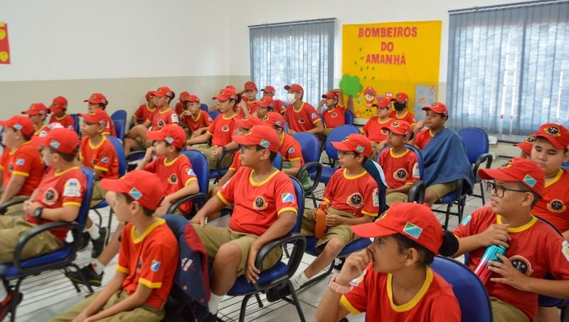 A equipe do DEMUTRAN, para iniciar as atividades nesta terça-feira (02), contou com a participação dos alunos Bombeiros do Amanhã, de Aquidauana, projeto da Secretaria Municipal de Assistência Social.