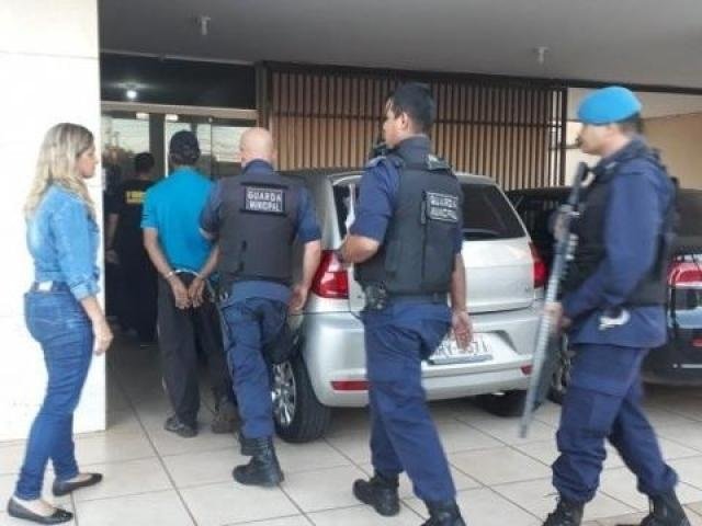 Suspeito sendo conduzido para a delegacia por guardas municipais (Foto: Geisy Garnes)