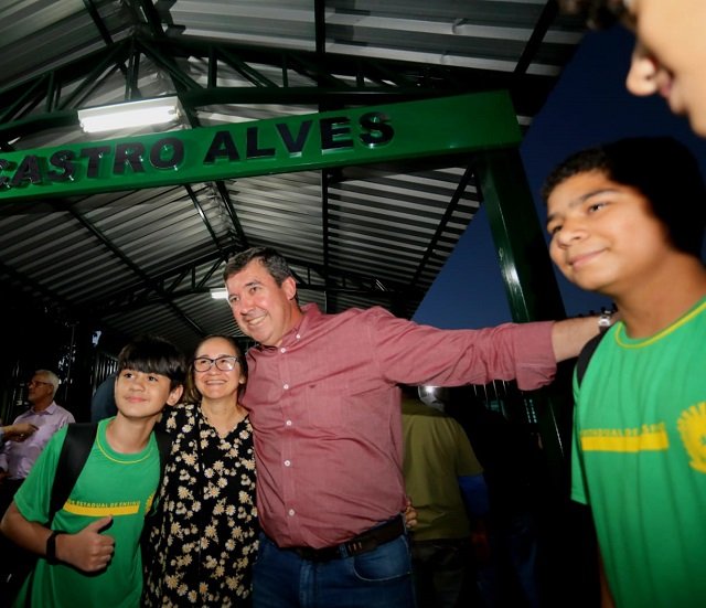 A entrega da reforma contou com a presença do governador Eduardo Riedel, do prefeito de Dourados, Alan Guedes, do secretário de Estado de Educação, Hélio Daher, da diretora da escola, Márcia Regina Wider, parlamentares e demais autoridades. Os alunos da Castro Alves ficaram eufóricos com a entrada do governador no ginásio esportivo.