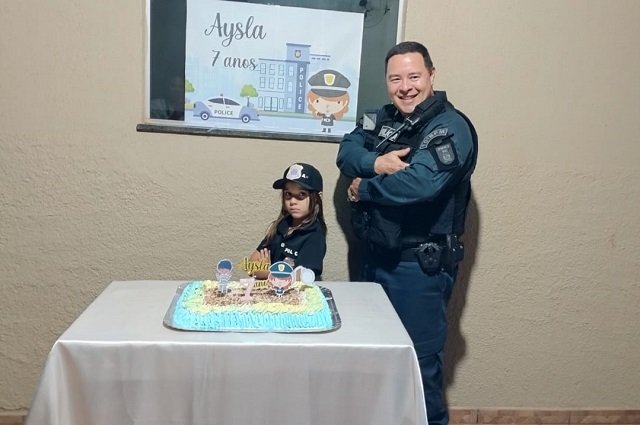 A família entrou em contato e fez o convite, e os policiais prontamente compareceram ao local para participar da festa de aniversário. Aysla teve a oportunidade de tirar fotos com a equipe, conhecer de perto uma viatura policial e ficou extremamente feliz com a surpresa.
