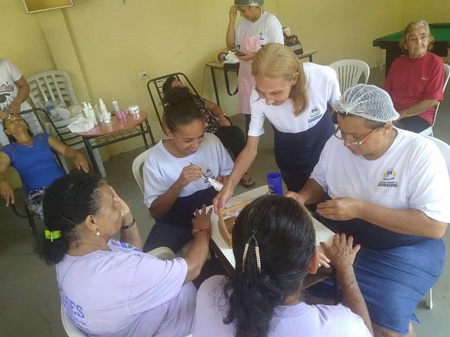 Hoje pela manhã, 22, os vovôs e vovós do Centro de Convivência do Idoso, recebeu a equipe do CRAS 2 - São Pedro, onde a psicóloga Ieda Magalhães, realizou uma roda de conversa sobre a auto estima e o papel da mulher na sociedade e também foi feito um trabalho de embelezamento que ficou a cargo da esteticista Lívia e manicure Elaine.