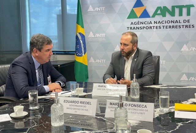 Em defesa do desenvolvimento do Mato Grosso do Sul, o governador Eduardo Riedel se reuniu nesta terça-feira (13) com o presidente da ANTT (Agência Nacional de Transportes Terrestres), Rafael Vitale, em Brasília. No encontro ele requisitou soluções céleres para relicitações da BR-163 e da ferrovia Malha Oeste. Ambas cortam o Estado.