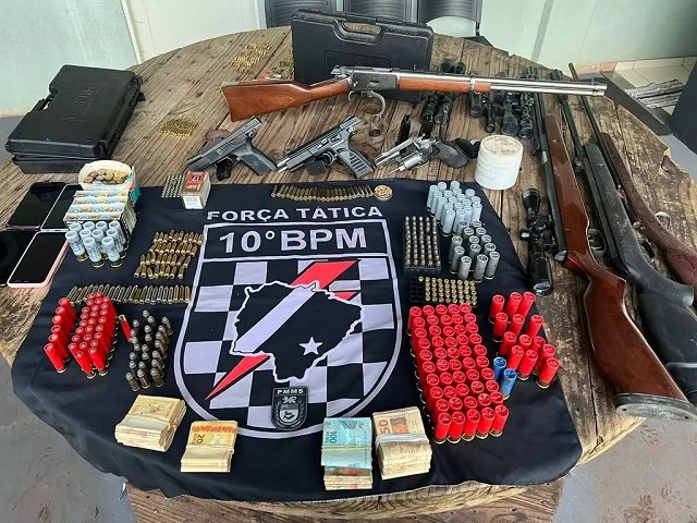 Pai e filho são presos com arsenal em MS e 9 mil reais em espécie