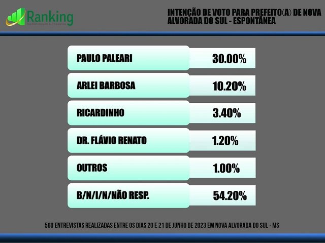 Eleições 2024: pesquisa Ranking aponta os favoritos em Nova Alvorada do Sul