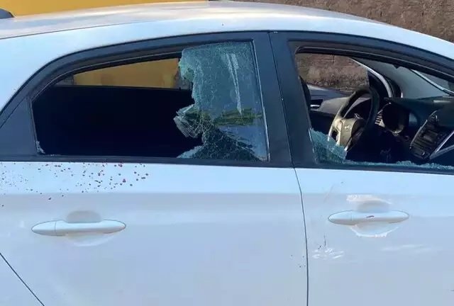 Carro foi encontrado com os vidros quebrados e marcas de sangue do lado do passageiro (Foto: Direto das Ruas)