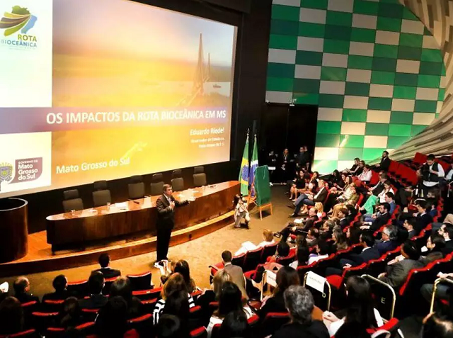 O governador apresentou uma palestra sobre os impactos do corredor bioceânico em Mato Grosso do Sul