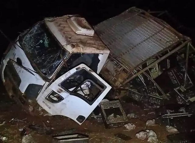 O caminhão ficou destruído e a carga de frangos espalhada pela rodovia que foi sinalizada. Não há informações se alguns animais chegaram a morrer ou foram recolhidos.