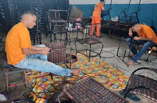 Na oficina, eles passam por um período de treinamento e cada trabalhador tem uma meta de produção a cumprir, demonstrando comprometimento com o trabalho. O reeducando Wellington Lopes de Oliveira é um deles e está se especializando na fabricação dos móveis em junco. “Na última semana, produzimos 36 cadeiras, mas a média que quero atingir é de 50 a 60 cadeiras por semana”, afirma.