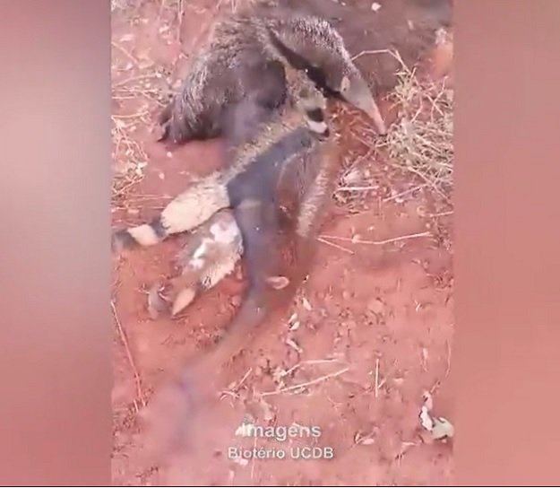 Um tamanduazinho-bandeira, de aproximadamente dois anos, foi encontrado em estrada vicinal da BR-262 "velando" a própria mãe atropelada, agarrado a ela. O local fica em Terenos, município localizado a 25 quilômetros de Campo Grande.