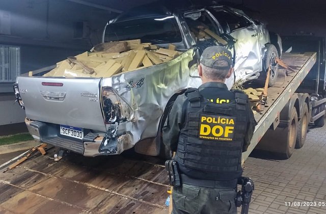 Por alguns quilômetros o homem, de 31 anos de idade, invadiu a pista contrária de direção e colocou em risco a vida dos usuários da via. Em determinado momento, o condutor perdeu o controle da caminhonete, saiu da pista e capotou a Hilux espalhando grande quantidade de volumes prensados da droga pelo local.