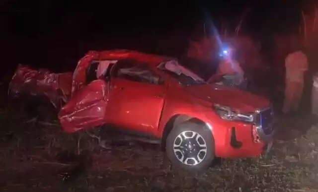 A caminhonete ficou totalmente destruída. A PRF (Polícia Rodoviária Federal) esteve no local.