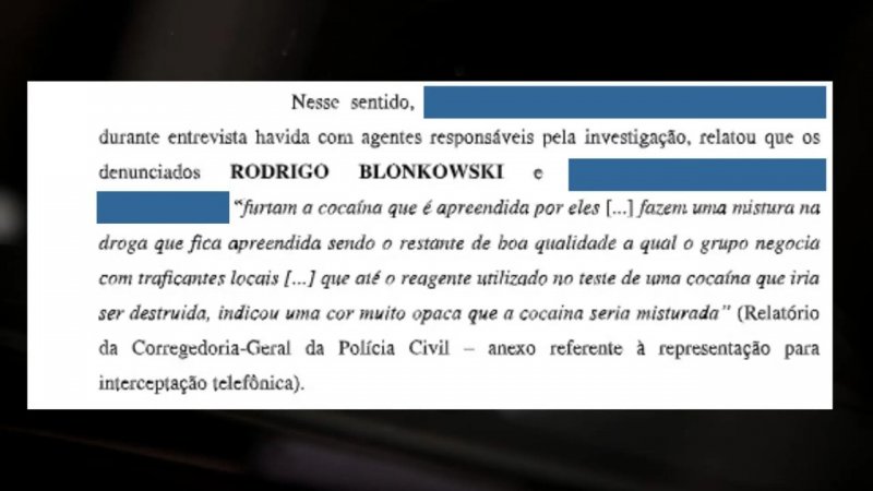 A denúncia do Gaeco ainda aponta que Rodrigo Blonkowski mantinha contato com um traficante, conhecido como ‘Bigão’, para fornecer informações de outros traficantes e, para isso, o traficante recebia &39;bonificações&39;. Um dos investigadores, que fazia parte do esquema, era o responsável por identificar os pontos de boca de fumo.