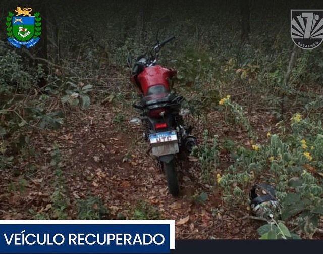 Os policiais adentraram a mata do bairro Cristo Rei, local onde geralmente é usado para esconderem produtos oriundos de furto/roubo e após as buscas, os militares encontraram a motocicleta produto de roubo.