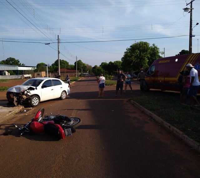 Logo em seguida o Corpo de Bombeiros também foi acionado para atender vitima de colisão carro x motocicleta no Residencial Cristo Rei em Anastácio.