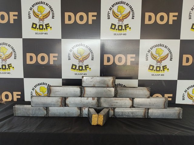Em vistoria, os policiais chegaram até o entorpecente, que estava acondicionado em peças de ferro soldado. Ao todo foram encontrados 10.6 quilos de pasta base de cocaína. O casal disse que pegou a droga em Corumbá e levaria até Campo Grande, onde receberia R$ 3,5 mil pelo transporte.