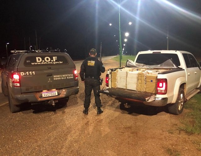 Policiais militares do DOF (Departamento de Operações de Fronteira) apreenderam, na noite desta quarta-feira (20), uma Volkswagen Amarok de cor branca carregada com grande quantidade de volumes prensados de maconha, com peso total de 1.078 quilos do entorpecente.