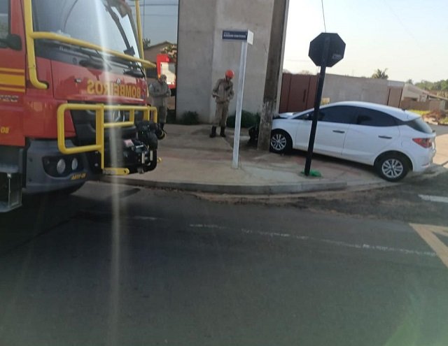 Uma senhora de 65 anos colidiu com o veículo com um poste. A suspeita é de que mulher teria sofrido um mal súbito o que a fez perder o controle do carro.