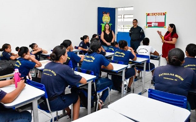 Já as alunas do Projeto Patrulha Mirim, em um outro momento, receberam orientações sobre higiene pessoal e capilar, com informações sobre cuidados com cada tipo de cabelo, bem como, a maneira correta de lavagem.