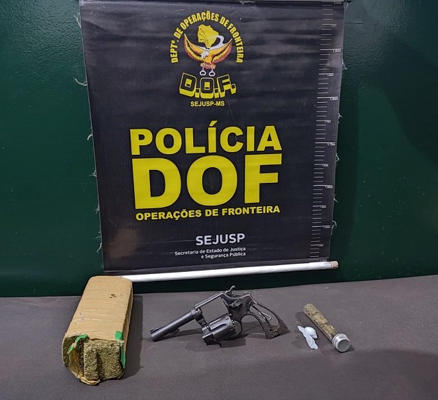 O DOF (Departamento de Operações de Fronteira) apreendeu neste sábado (23), em Itaquiraí, um revólver calibre .38 e 800 gramas de maconha. Três pessoas, com diversas passagens pela polícia foram presas em flagrante.