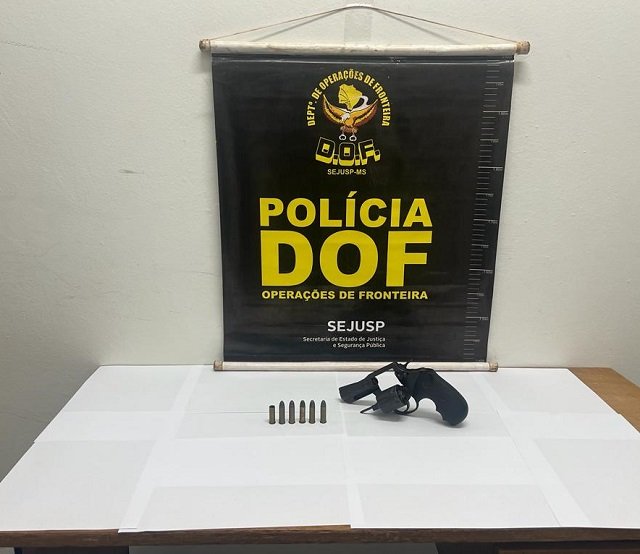 O DOF (Departamento de Operações de Fronteira) apreendeu neste sábado (25), em Japorã, um revólver calibre .357 com cinco munições intactas e uma deflagrada. Um homem de 21 anos de idade com passagens policiais por assalto, receptação, furto, homicídio simples entre outros registros criminais foi preso em flagrante. Uma segunda pessoa também foi detida e uma terceira fugiu.