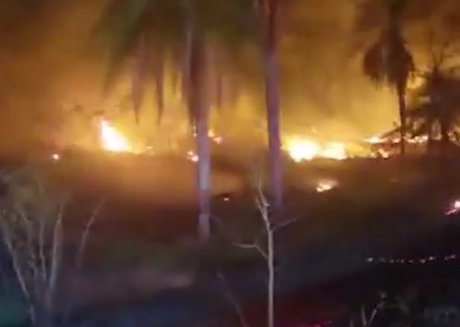 Vídeo divulgado pelo Corpo de Bombeiros de Corumbá mostra área de mata às margens da BR-262, na cidade a 428 quilômetros de Campo Grande, sendo tomada por incêndio de grandes proporções na noite de sábado (30).