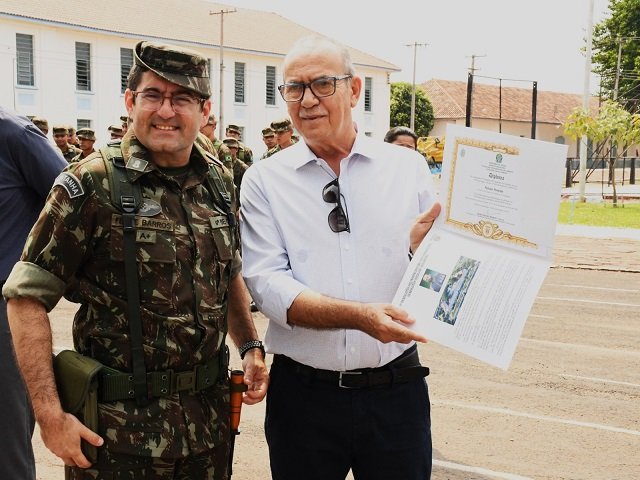 O Diploma de Amigo do 9º BE Cmb foi entregue ao presidente da Câmara, vereador Nilson Pontim, pelo TC Felipe Araújo Barros, ao mesmo tempo em que agradeceu o apoio a instituição. Por sua vez Nilson Pontim se colocou a disposição, sempre que chamado para contribuir com esta importante unidade militar. “Agradeço ao comandante Felipe Barros e a todos que fazem parte desta unidade do Exército Brasileiro pela parceria e tão importante participação em diversas situações emergenciais em nosso município. Parabéns pelos 81 anos de serviços prestados ao Brasil”, destacou o parlamentar.