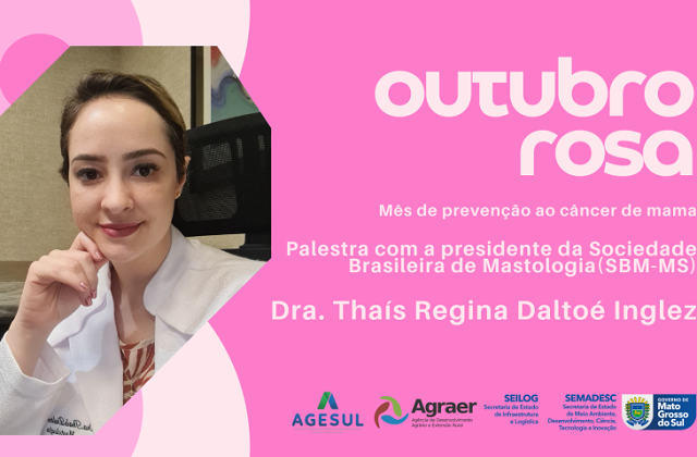 Evento: Palestra Outubro Rosa com a presidente da Sociedade Brasileira de Mastologia, regional de Mato Grosso do Sul (SBM-MS), Dra. Thaís Regina Daltoé Inglez