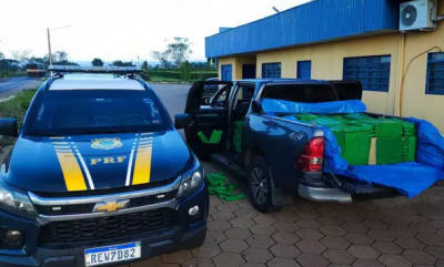 PRF (Polícia Rodoviária Federal) apreendeu 1.120 quilos de maconha em uma Toyota Hilux na BR-267, sentido Bataguassu, na manhã desta segunda-feira (9). O condutor abandonou o veículo no acostamento da rodovia e não foi encontrado.