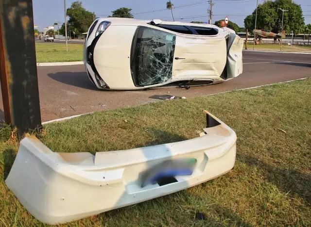 Para-choque traseiro chegou a se desprender da estrutura do Toyota Etios capotado (Foto: Paulo Francis)