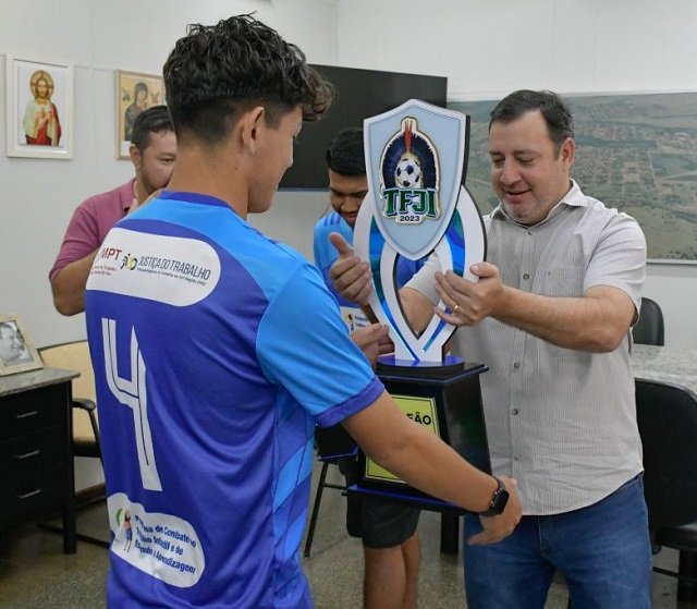 Na manhã de hoje, 18, toda a delegação foi recebida pelo prefeito Odilon Ribeiro e os vereadores Wezer Lucarelli, Anderson Meireles e Clériton Alvarenga, no gabinete, para a apresentação da equipe campeã e dos troféus conquistados, de 1º lugar na competição e de artilheiro Gerilson Júnior.