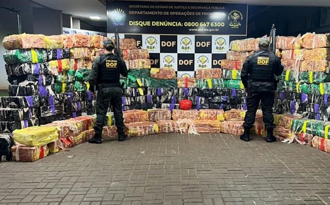 O material apreendido, avaliado em aproximadamente R$ 8,2 milhões, foi encaminhado à Defron (Delegacia de Repressão aos Crimes de Fronteira), em Dourados.
