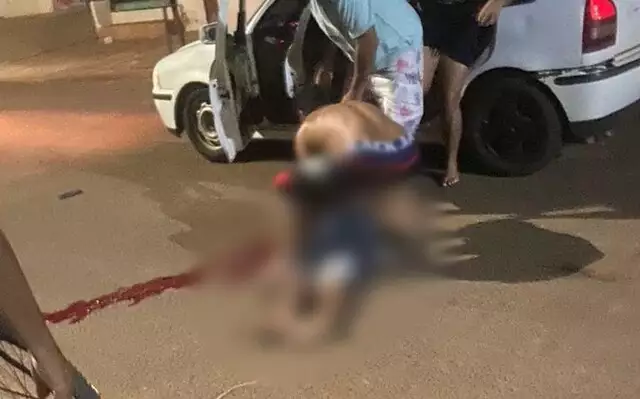 Jovem sendo socorrido por moradores do bairro. (Foto: Jornal Cenário MS)