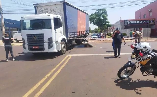 Caminhão cruza preferencial e mata motociclista em avenida de Dourados