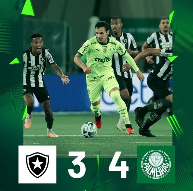 Em um jogão de bola disputado no estádio Nilton Santos, o Palmeiras arrancou uma vitória de 4 a 3 de virada sobre o Botafogo, na noite desta quarta-feira (1), para abrir de vez a disputa pelo título do Campeonato Brasileiro. Após a quarta vitória seguida na competição, o Verdão chegou aos 56 pontos, três a menos do que o Alvinegro (que tem uma partida a menos, contra o Fortaleza).