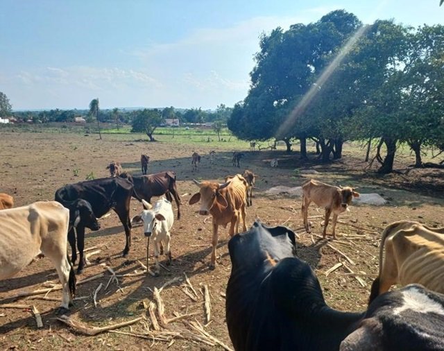 Foi constatado que a propriedade não possui nenhum tipo de pastagem, tanto nativa quanto plantada e que o proprietário não tomou as devidas medidas em época de escassez de Chuva. Também foi verificado que os cochos estavam secos/vazios, apesar do mesmo informar que fornece alimentação.