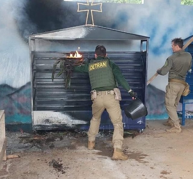 De imediato, eles foram até o local e combateram as chamas, extinguindo-as por completo, evitando a propagação e consequente destruição do Santuário Nossa Senhora Aparecida em Piraputanga.