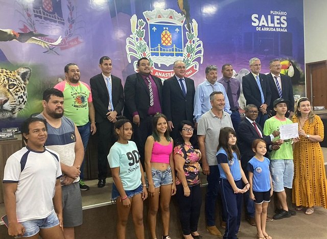 Por deliberação do Plenário da Câmara Municipal de Anastácio, em virtude da proposição de autoria do vereador, professor Aldo José dos Santos foi outorgado ao jovem dançarino José Roberto Amarilha Guerra, de 19 anos, Moção de Aplausos subscrita pelos demais vereadores e vereadora e aprovada na Sessão Ordinária realizada na última terça-feira (07).