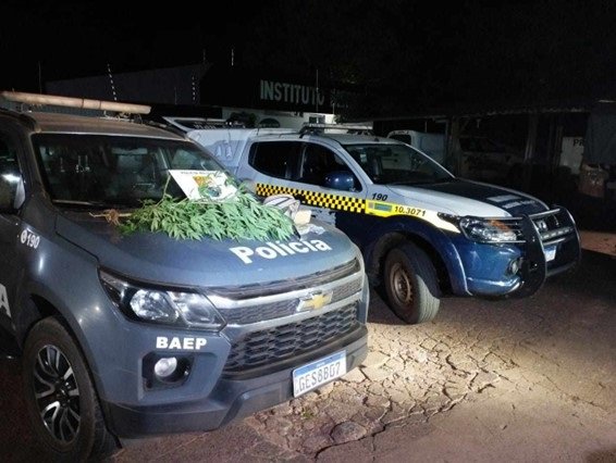 Em seguida, foi constatado que próximo ao local da queda da mochila, foi encontrada uma planta com folhas semelhantes a Cannabis Sativa, o local parecia estar revirado e após uma varredura minuciosa, foi encontrado enterrado próximo a referida planta, um tablete de maconha de aproximadamente 300g (trezentas gramas). Uma das pessoas, que estavam ali sentadas, se apresentou como o proprietário do material ilícito, alegando comercializar e consumir os entorpecentes.