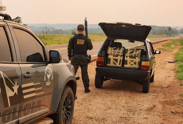 Policiais militares do DOF (Departamento de Operações de Fronteira) apreenderam, na manhã desta segunda-feira (13), um veículo Fiat uno carregado com 205 quilos de maconha.