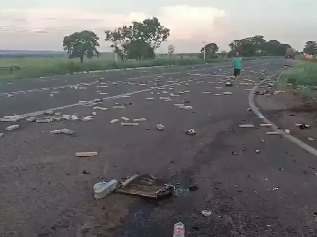 Entorpecente ficou espalhado na pista da MS-154. (Foto: Reprodução/PMR)