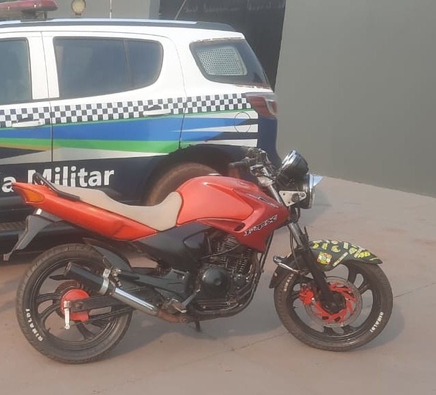 Durante a abordagem, foi constatado que a motocicleta apresentava sinais identificadores adulterados, como a marcação do chassi raspada e não possuía placa.
