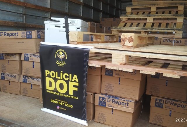 Durante a vistoria veicular e na carga de papel que transportava, o homem apresentou aos policiais uma nota fiscal que, ao ser auditada junto ao sistema oficial do governo, constatou-se estar cancelada e, portanto, sem a permissão legal para o transporte da carga configurando um crime de sonegação fiscal.
