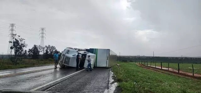 Uma carreta tombou por conta da chuva e dos fortes ventos na Rodovia BR-262 no km 285 no trecho entre Campo Grande e Ribas do Rio Pardo. O caminhoneiro não se feriu e seguia sentido ao município distante a 103 km da Capital.