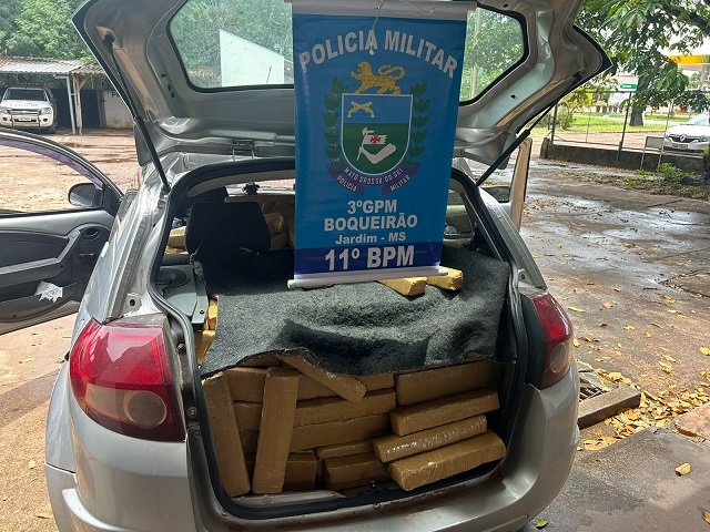 A guarnição em posse das informações, solicitou apoio da Radiopatrulha de Jardim, a fim de realizarem a abordagem do veículo supracitado. Pouco tempo após iniciarem a barreira policial, as guarnições lograram êxito em abordar um veículo Ford KA prata, conduzido por um homem de 27 anos, que continha no seu interior a quantidade de 458 (quatrocentos e cinquenta e oito) tabletes, pesando 450 kg (quatrocentos e cinquenta quilogramas).